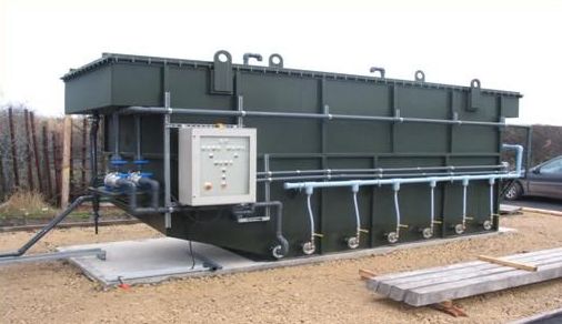 生产排放的污水经管网系统汇集后,经粗格栅后进入后续处理系统。粗格栅主要用来拦截污水中的大块漂浮物,以保证后续处理构筑物的正常运行及有效减轻处理负荷,为系统的长期正常运行提供保证。污水调节池:用于调节水量和均匀水质,使污水能比较均匀进入后续处理单元。调节池内设置预曝气系统,可提高整个系统的抗冲击性,及减少污水在厌氧状态下的恶臭味,同时可减少后续处理单元的设计规模,污水池内设置潜污泵,用以将污水提升送至后续处理单元。缺氧池:曝气器:本工艺采用微孔曝气器,其溶解氧转移率比其它曝气器高,特点是不老化、重量轻、使用寿命长,同时具有耐腐蚀、不易堵塞等优点